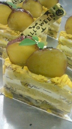 明日はハロウィンなので、お店にはかぼちゃのケーキがたくさん並びます!