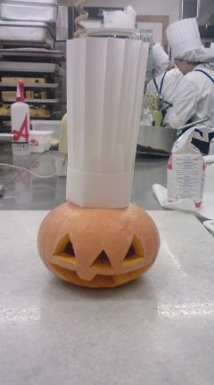 写真はお客様から頂いたかぼちゃでパンプキン君を作っているところです。