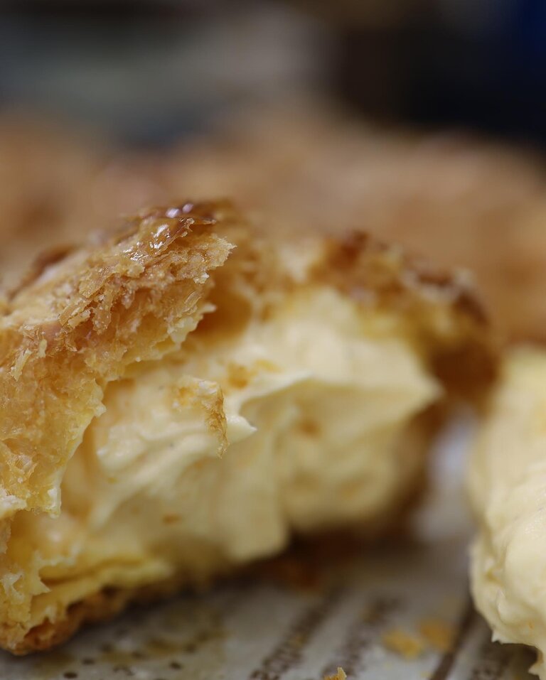 今の山シューは以前と比べるとシュー生地がより薄くなり、周りのパイ生地はよりサクッとした食感です。サクッとよりもカリッとした食感に近いです。そしてパイの味がしっかりとしてカスタードクリームとの相性が抜群に良くなりました。